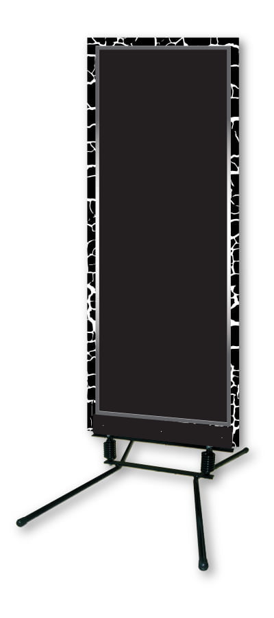 Impression recto-verso sur matériau composite alu/PVC 6mm, laqué noir Piètement mécano vissé sur ressorts