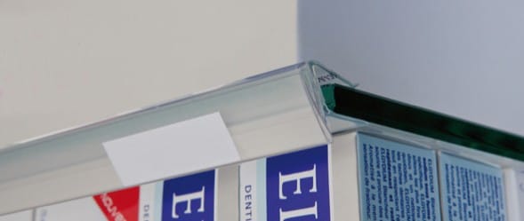 Accueil » Boutique » Pharmacies » Réglette clipsable plate transparente pour étagère verre – Version haut de meuble – À l’unité